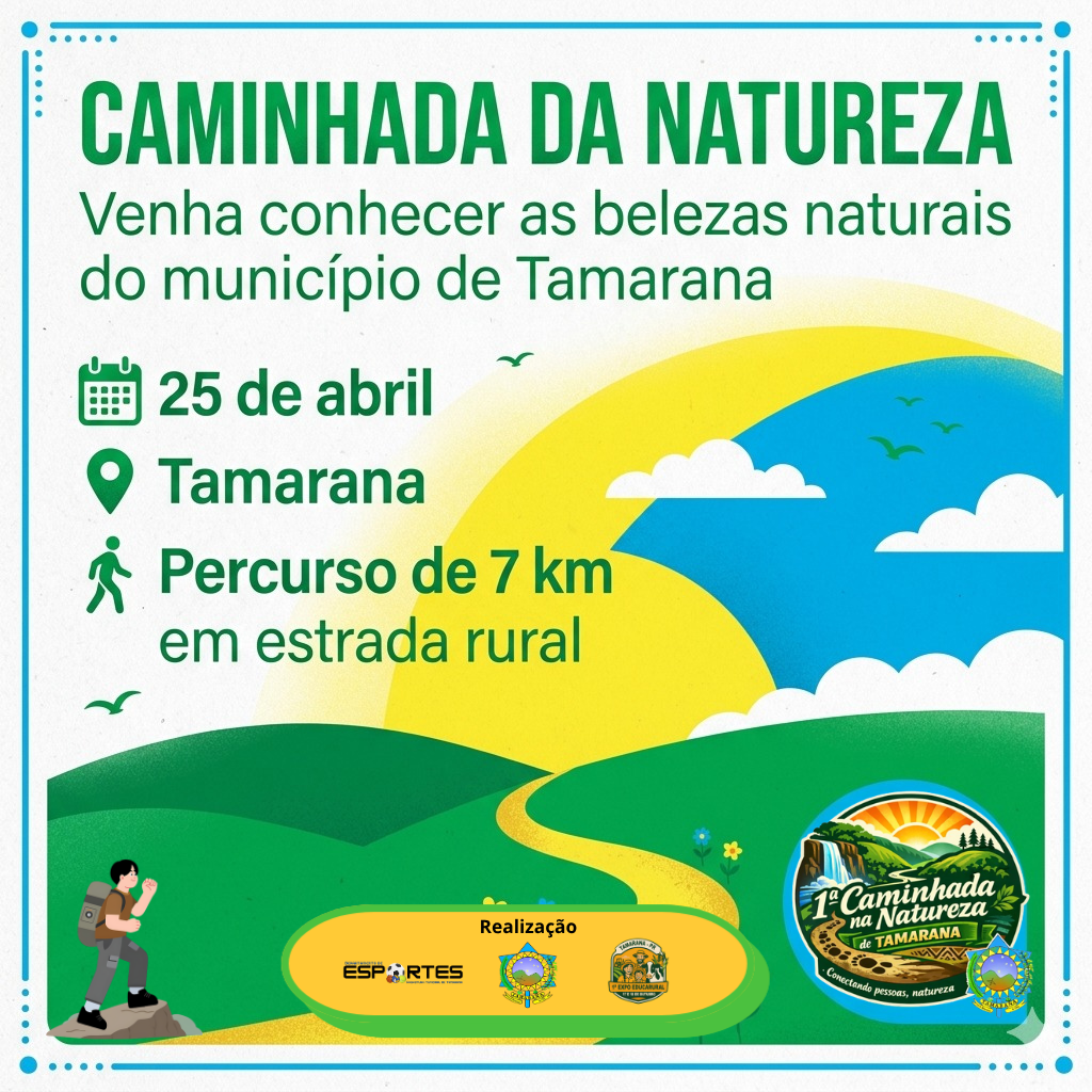 Tamarana é conhecida por suas belezas naturais; cachoeiras, pousadas e estâncias atraem públicos de diversas localidades do país. Com foco em estimular ainda mais o turismo no município, a Prefeitura de Tamarana, por meio da Secretaria de Turismo, realizará, no dia 25 de abril, a 1ª edição da Caminhada na Natureza.